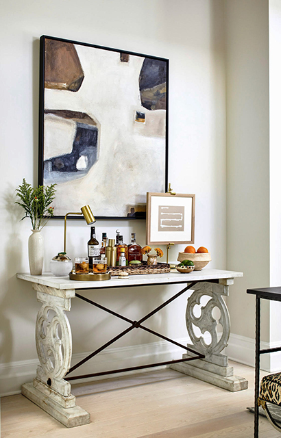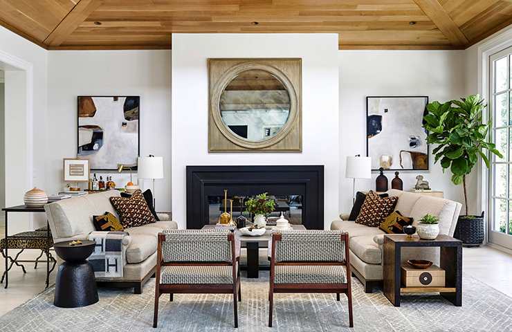 We were honored to work with Pamela Harvey Interiors on creating two large paintings for the Aspire McLean, Virginia, show house. The pieces were created keeping the aesthetics, textile patterns and color palette used by the design firm. Each painting flanked the fireplace and helped ground the rooms overall modern statement and mood.