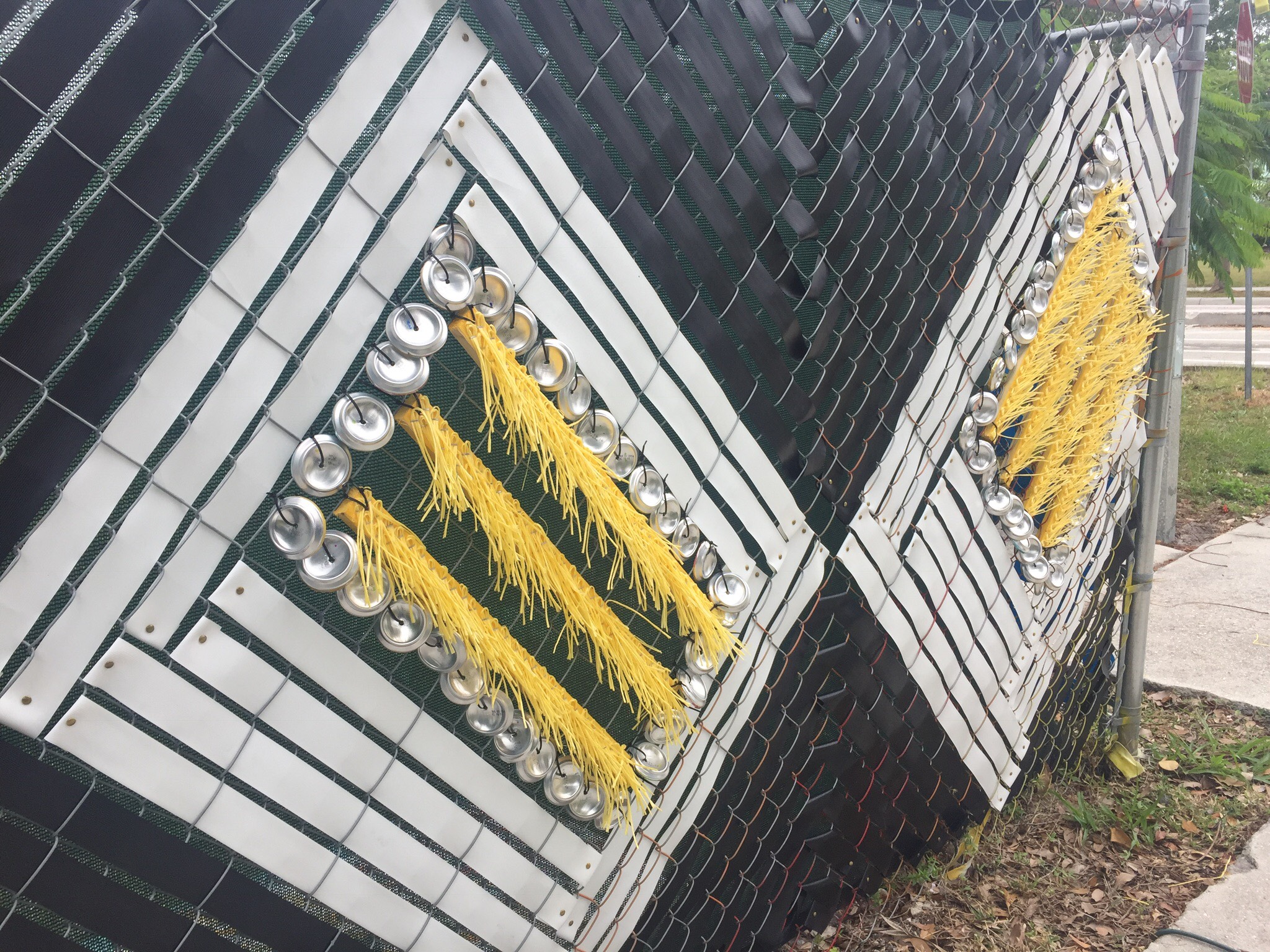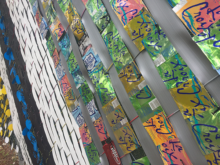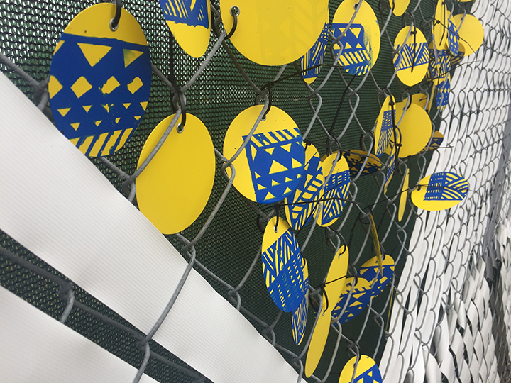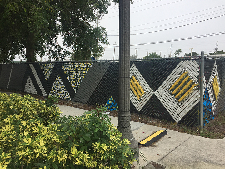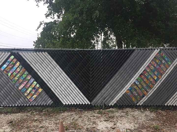 The Northwood Arts neighborhood granted us this “Modern Bohemian” fence installation that withstood the Florida elements for 18 months. The theme and color palette was driven by the community itself. This project also incorporated workshops with locals to help print the silkscreened discs and hand cut aluminum pieces. Each piece was attached, shaped or printed by hand. It was a labor of love and an overall unforgettable experience.